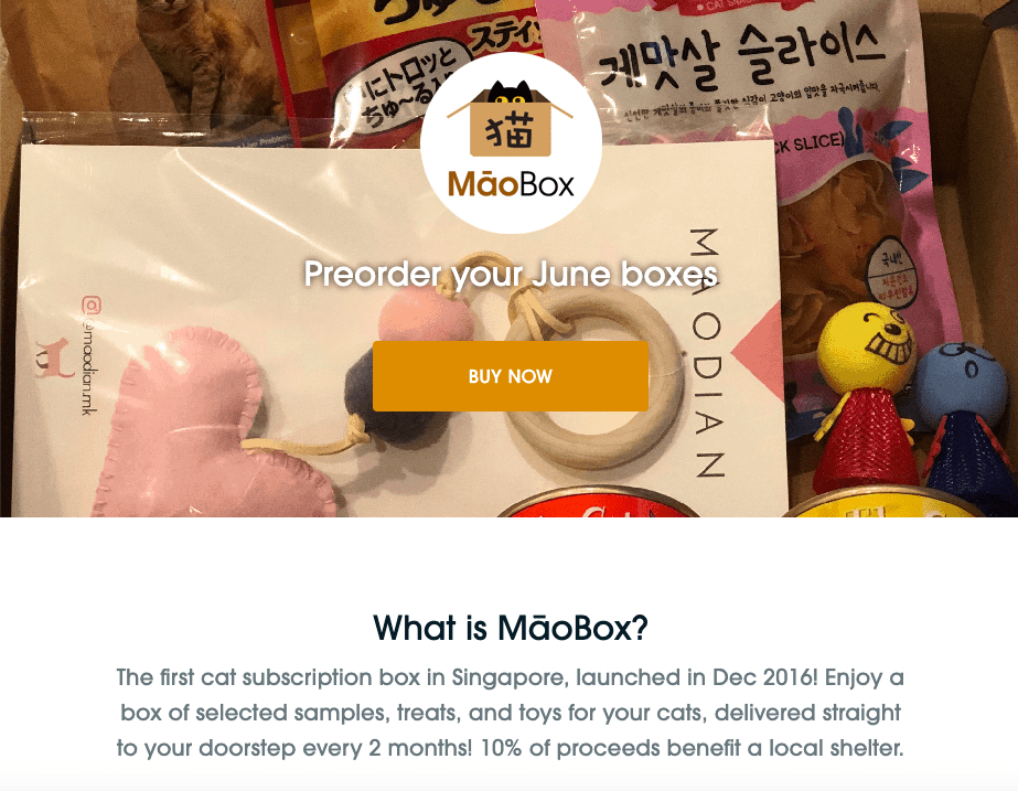 Other than individual boxes, you can also opt for the bigger Pawty boxes if you have more than one cat. 10% of each purchase of one MaoBox also goes to a local cat shelter, so you will be contributing to the welfare of other cats too.
