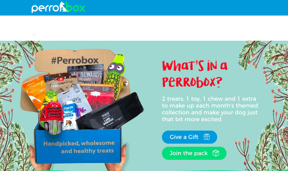 Perrobox is a monthly subscription service specially tailored to provide entertainment and yummy food for your furry dog friend. Each box comes with treats, a toy, a chew, and something extra for your pet – these products are chosen based on your dog’s size.