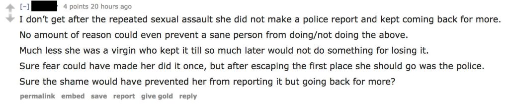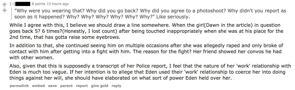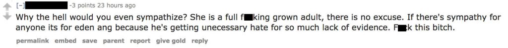 If reading through the screenshots of Eden’s conversations aren’t enough of an ordeal in itself, I invite you to take a gander through the Facebook comments section or Reddit thread in response to the subject matter.