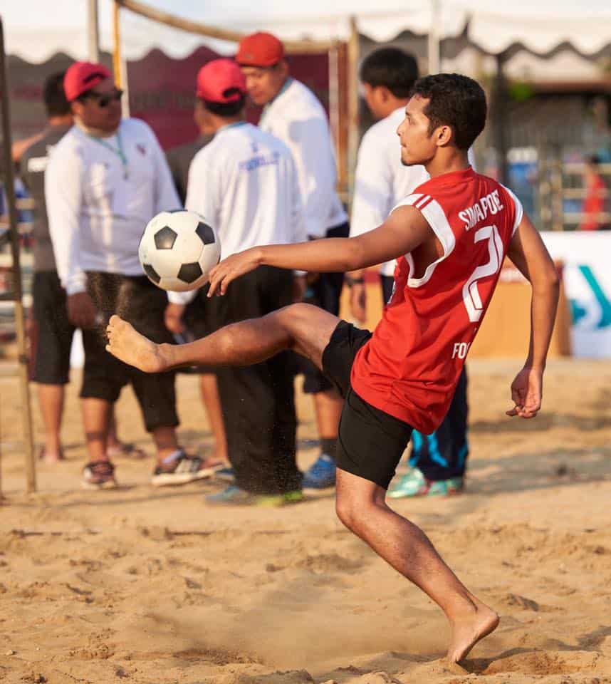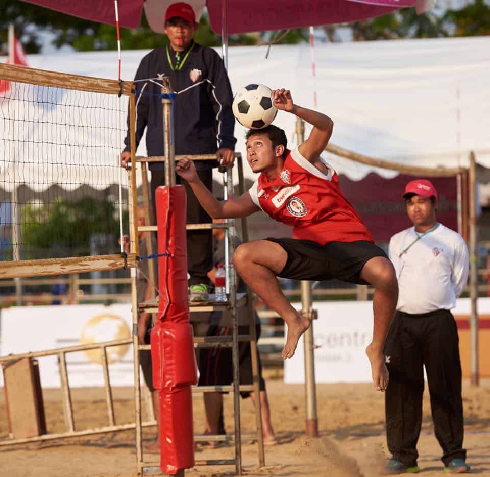 This makes it similar to Sepak Takraw although in the case of foot volley, it’s sand-based instead of parquets or concretes, and a beach volleyball is used instead of a ratan one.