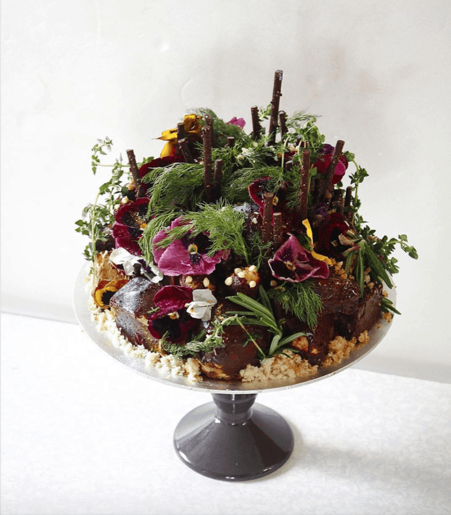 The final masterpiece took a whole day’s work, and resembled a forest – complete with herbs and edible flowers – to represent a terrarium. She also decided to add a special touch.