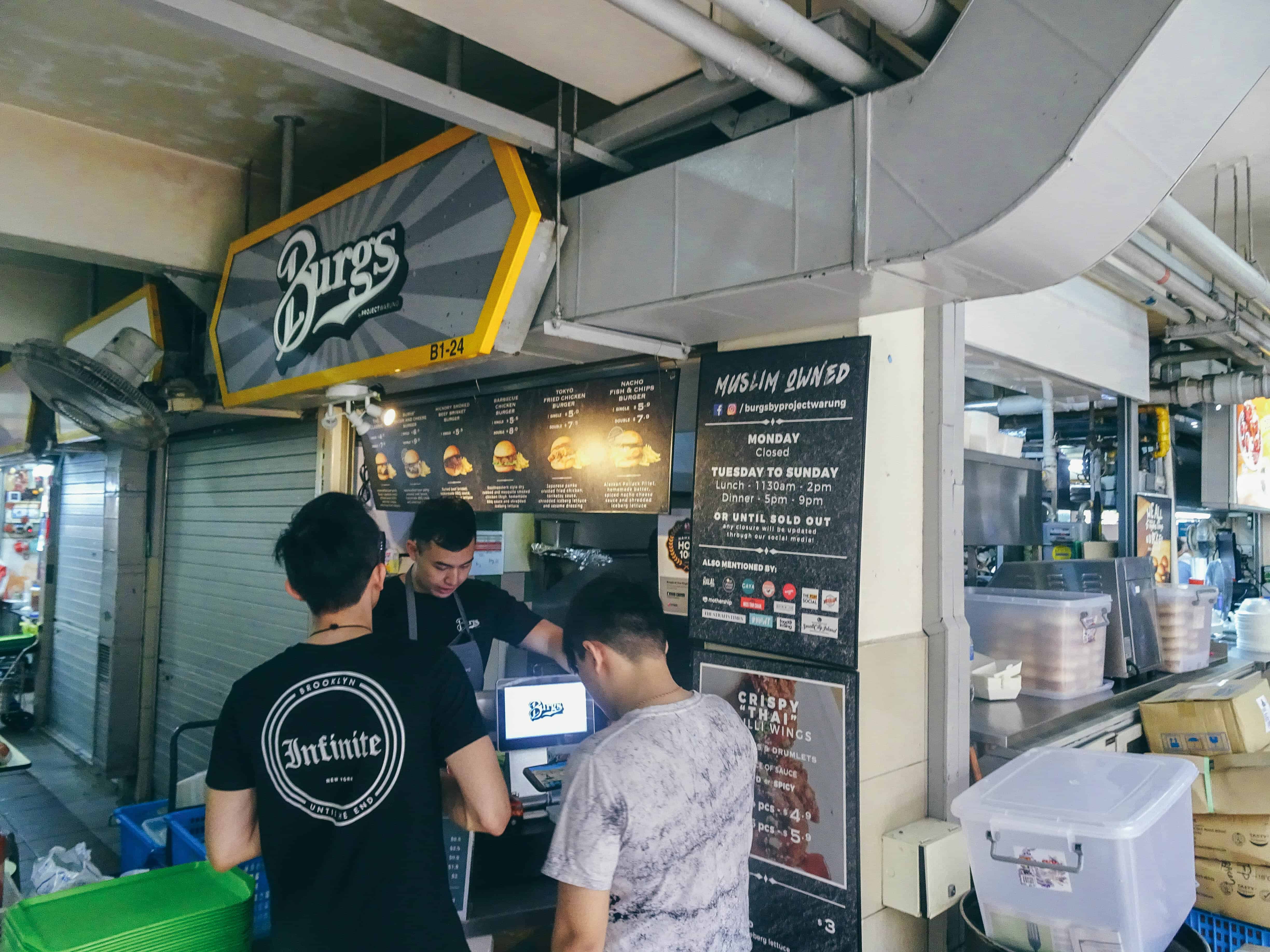 Nestled in Golden Mile Food Centre, Burgs by Project Warung speedily works away to satisfy the demands of a constant queue.